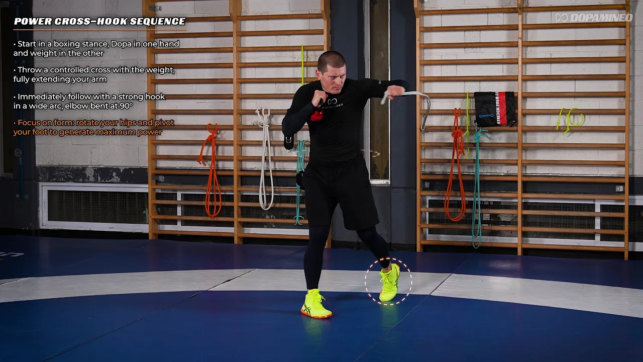 This full boxing footwork workout uses Dopa resistance to enhance agility, balance, and movement efficiency for sharper, more controlled steps