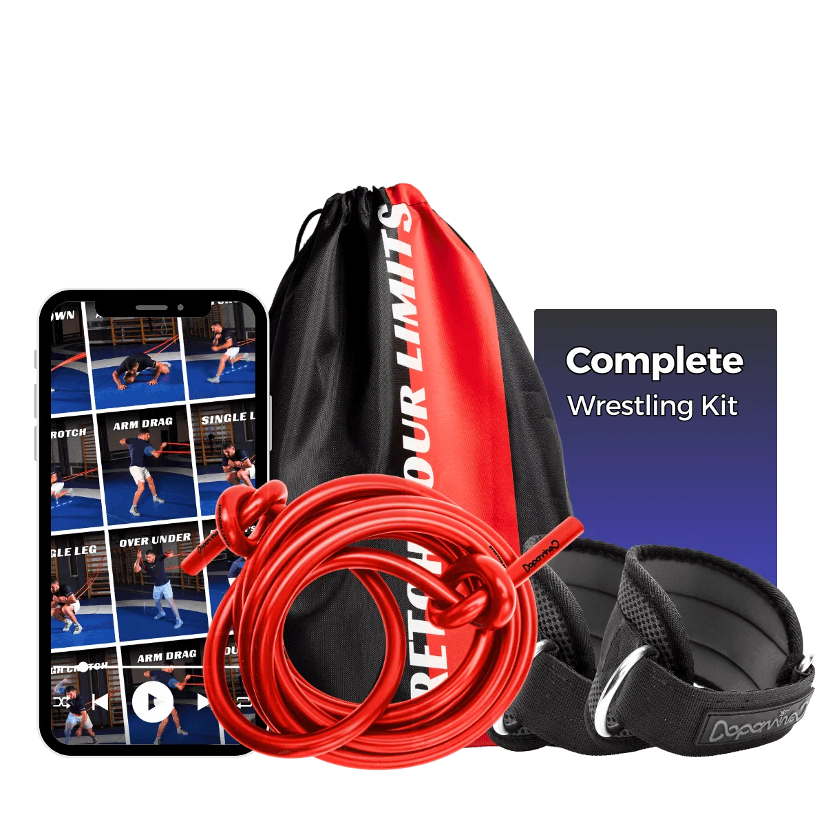 Domina el tatami con un sistema 100% enfocado en la lucha libre, diseñado para desarrollar todas las características esenciales: un agarre potente, una flexibilidad inigualable, una fuerza abdominal sólida y una resistencia de brazos implacable para el clinch y los derribos. Consíguelo todo con la herramienta definitiva de entrenamiento de lucha libre. Da la bienvenida a Dopa Band.